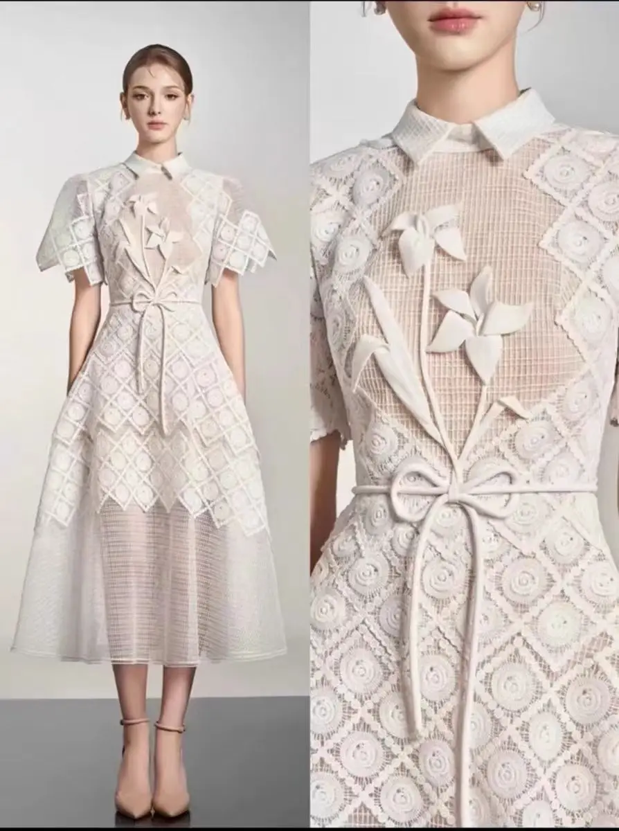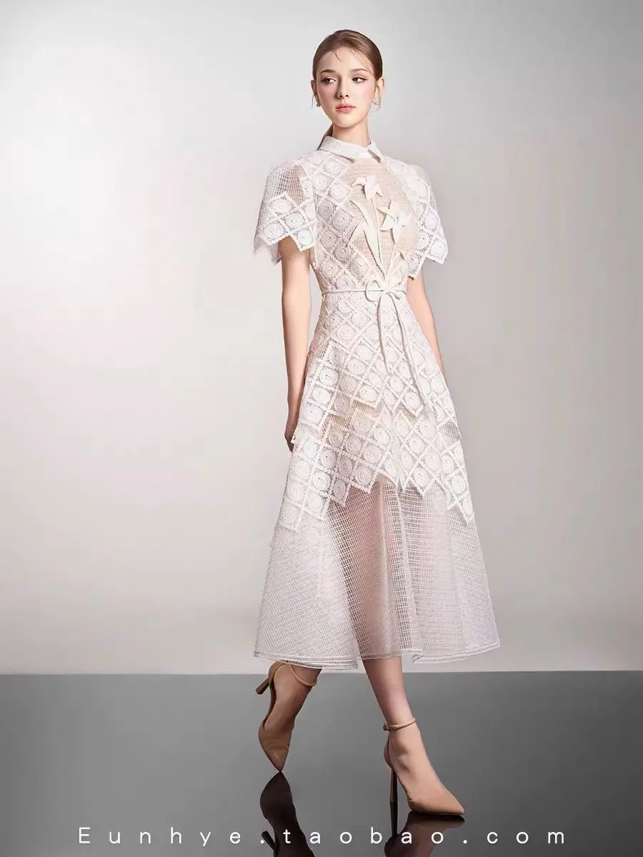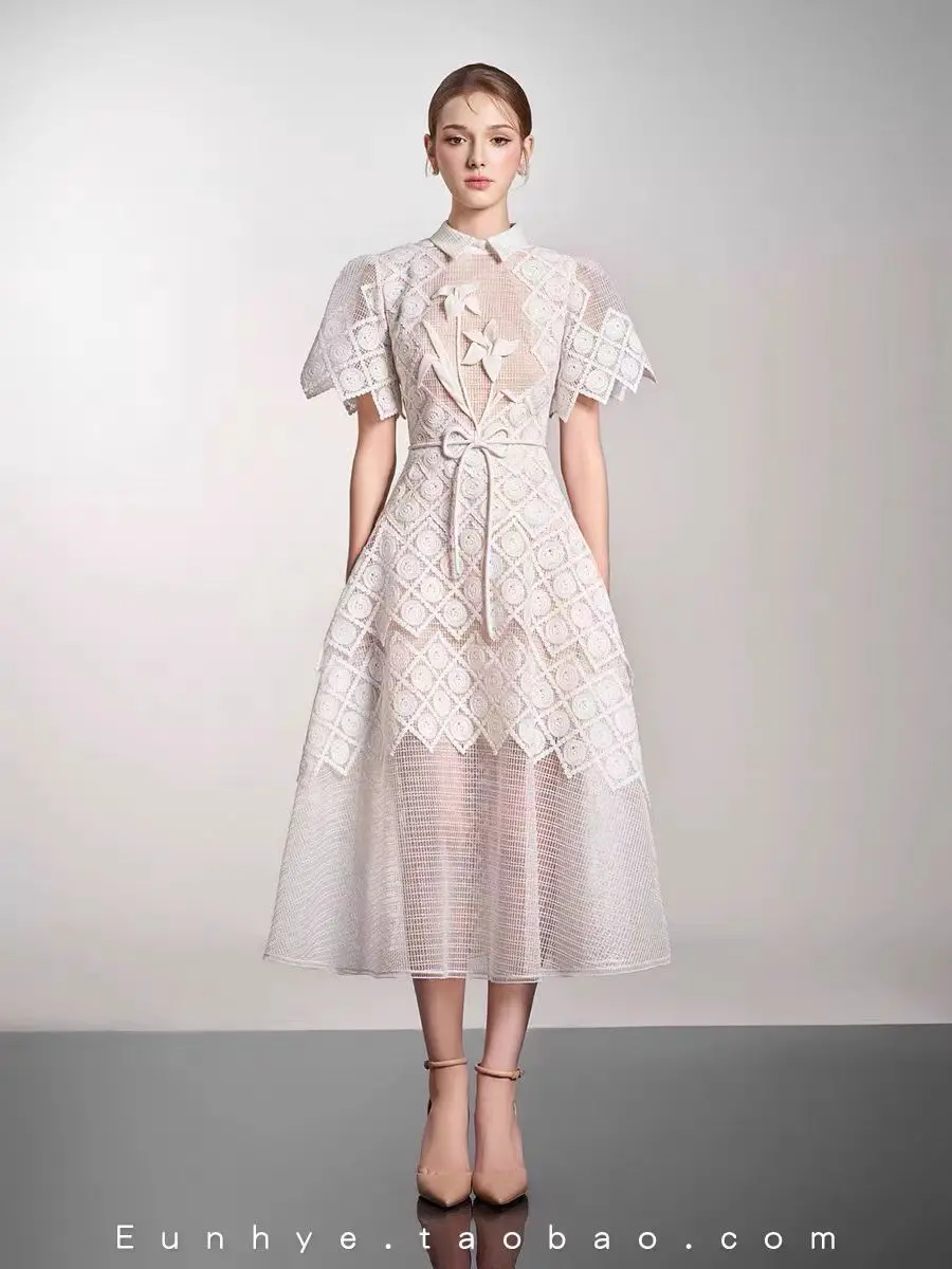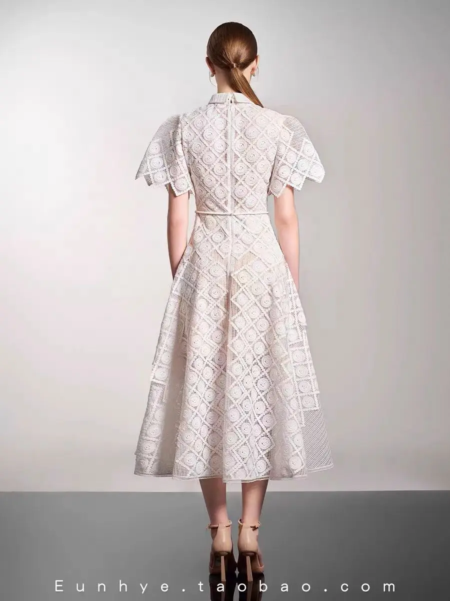 Boutique Wholesale Women's Summer New Fashion Elegant Lace Waist A-Line Dress High Waist Design Maxi Dress Short Casual Dresses
